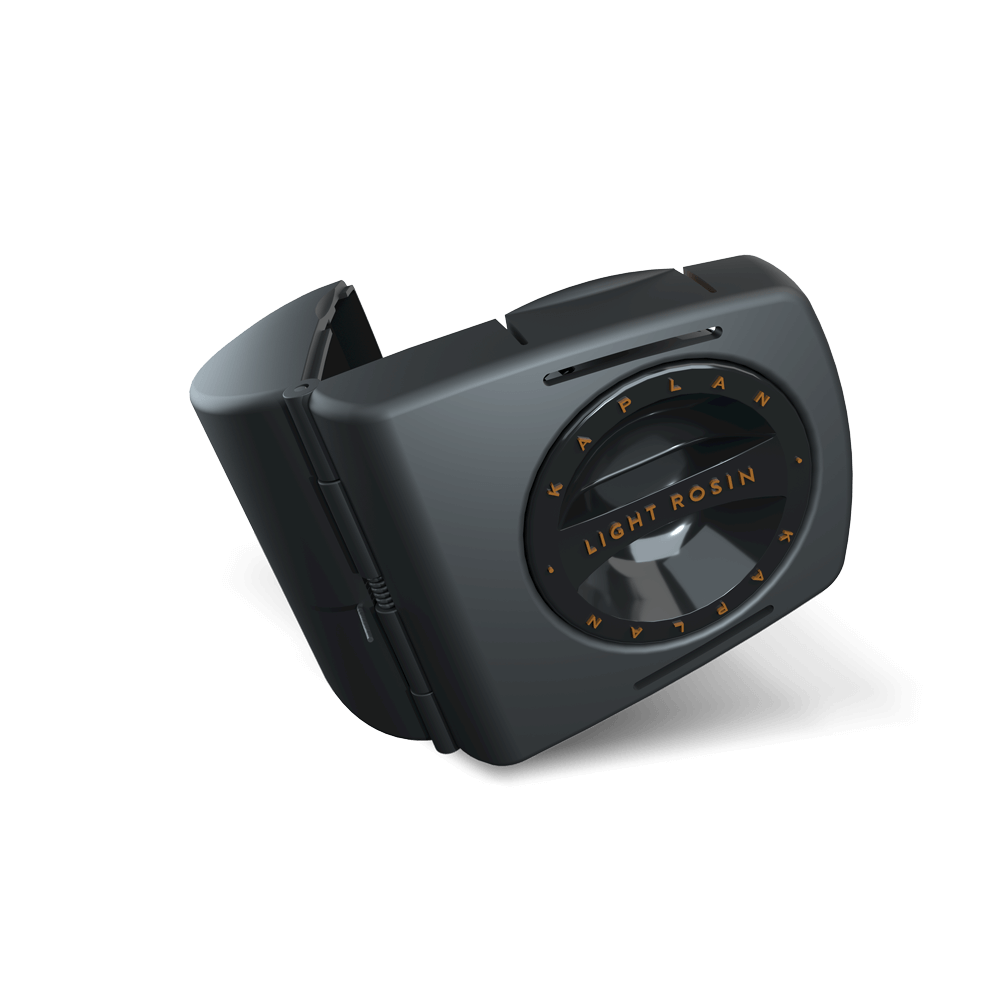 D’Addario Kaplan Premium 松香 採用高純度天然樹脂配方,提供乾淨、低粉塵的使用體驗,確保弓毛與弦之間的穩定摩擦力。松香置於現代感珠寶式收納盒(jewel case)中,可旋轉設計讓松香能均勻塗抹於弓毛上。