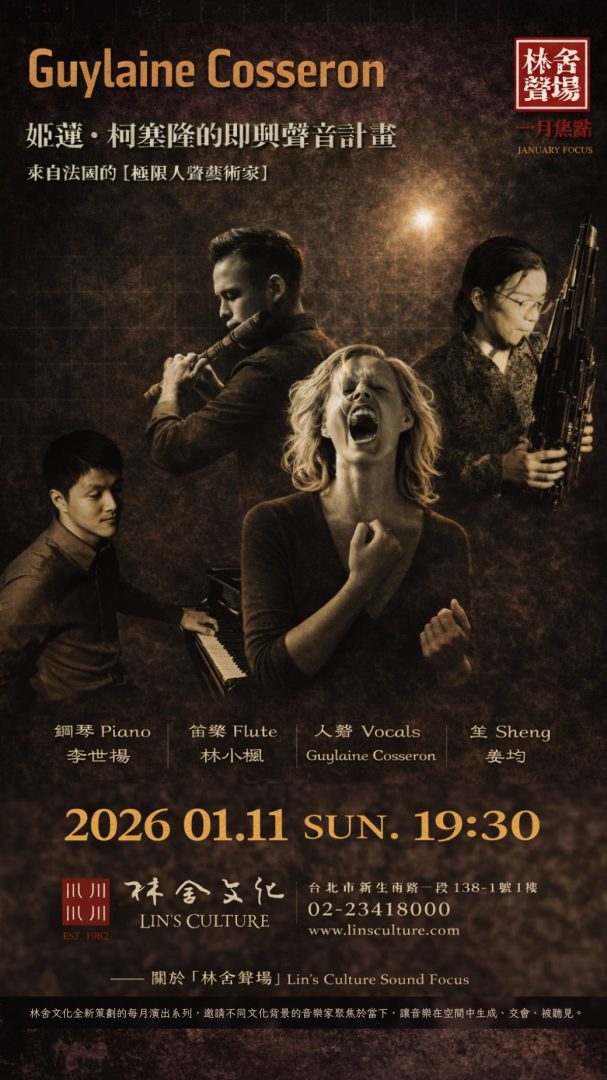 Guylaine Cosseron 姬蓮・柯塞隆的即興聲音計畫,搭配笙、鋼琴與笛樂,為一月畫下精彩的句點。