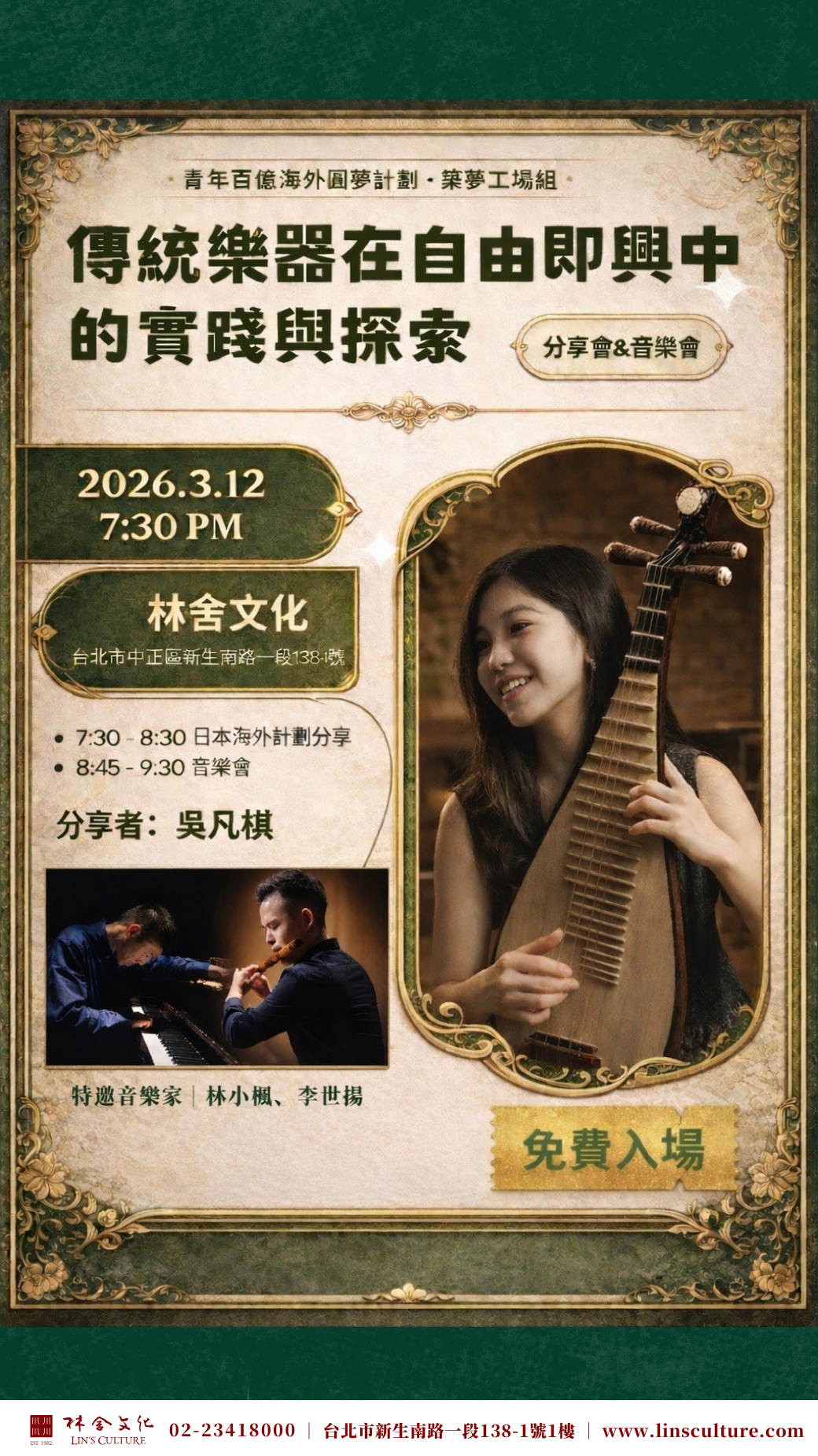2026.3.12(四)19:30 傳統樂器在自由即興中的實踐與探索 分享會&音樂會