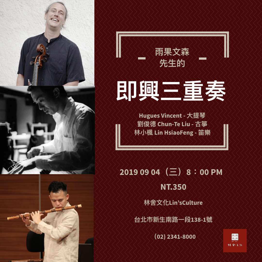 Ignaz Schick 林小楓 —《聲音的實驗派對法國大提琴家Hugues Vincent來台巡演,將於9月4號作客林舍文化,並和本地的古箏演奏家劉俊德、笛樂演奏家林小楓共同帶來一場東方與西方樂器的即興交鋒,歡迎感興趣的朋友們蒞臨觀賞~