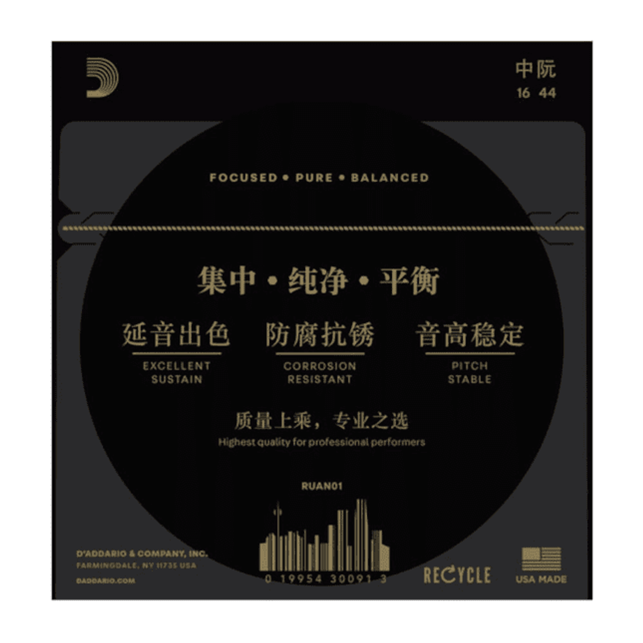 D’Addario RUAN01 中阮弦組 採用高碳鋼芯與扁平不鏽鋼纏弦技術,表面高拋光處理,手感滑順、音色均衡且具穿透力。